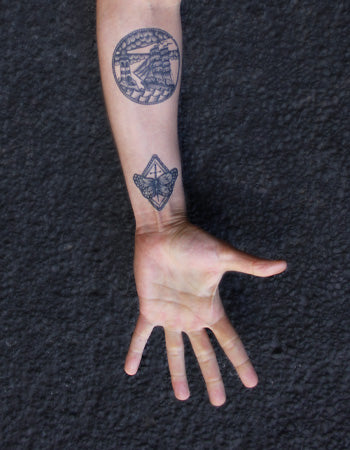 The majority of the tattoos are designed by the Tattooed Now team. The exceptions are: