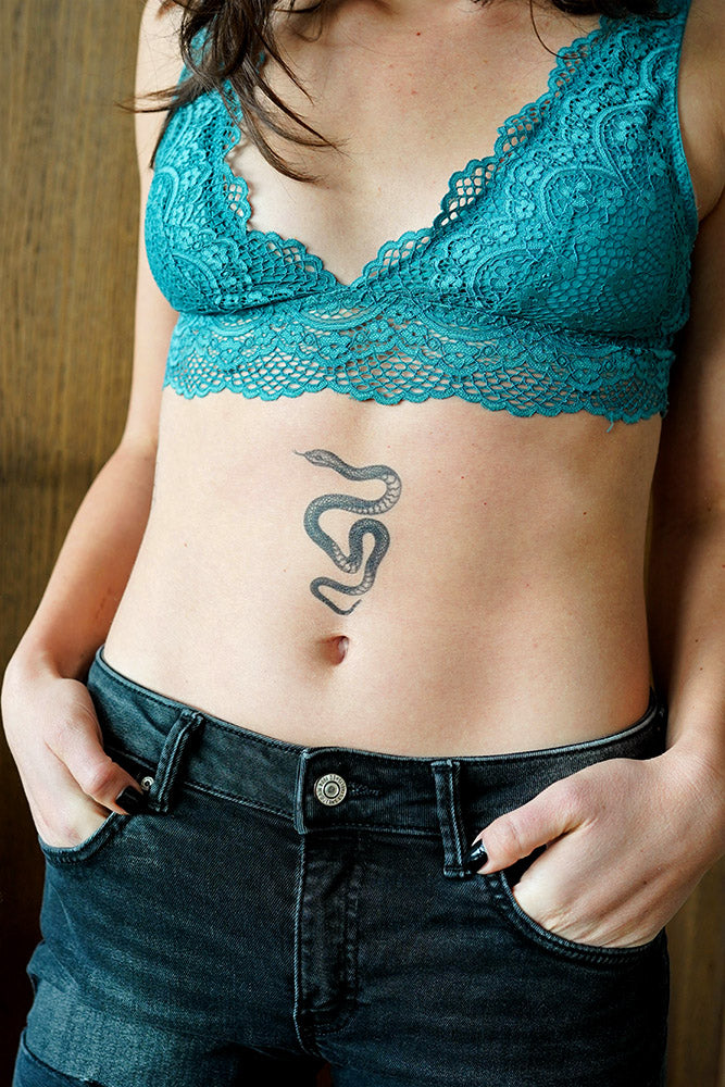 Lo suficientemente pequeño para ser discreto, pero lo suficientemente grande para ser visible si te apetece presumir, este tatuaje increíblemente intrincado con una serpiente te dará el efecto sorprendente que estás buscando; simplemente aplicándolo en tu brazo, cuello o pecho.