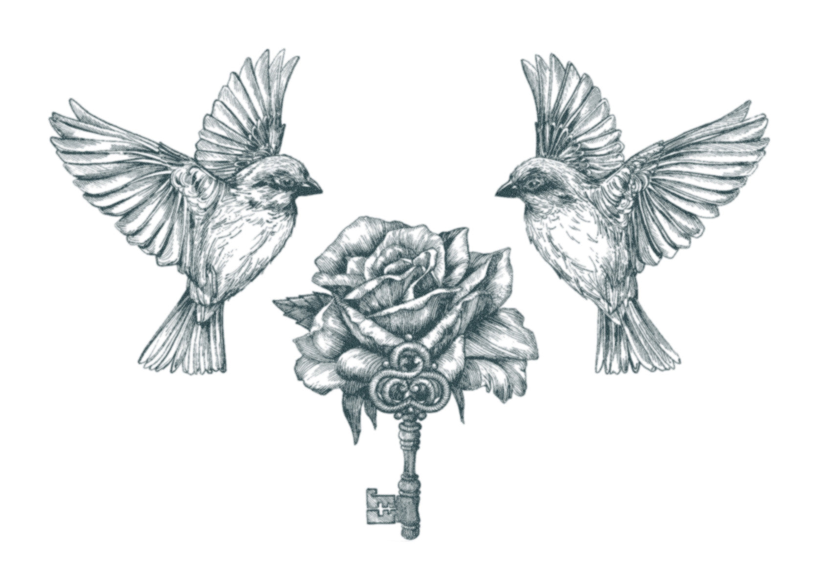 Birds, Rose and Key Temporary Tattoo