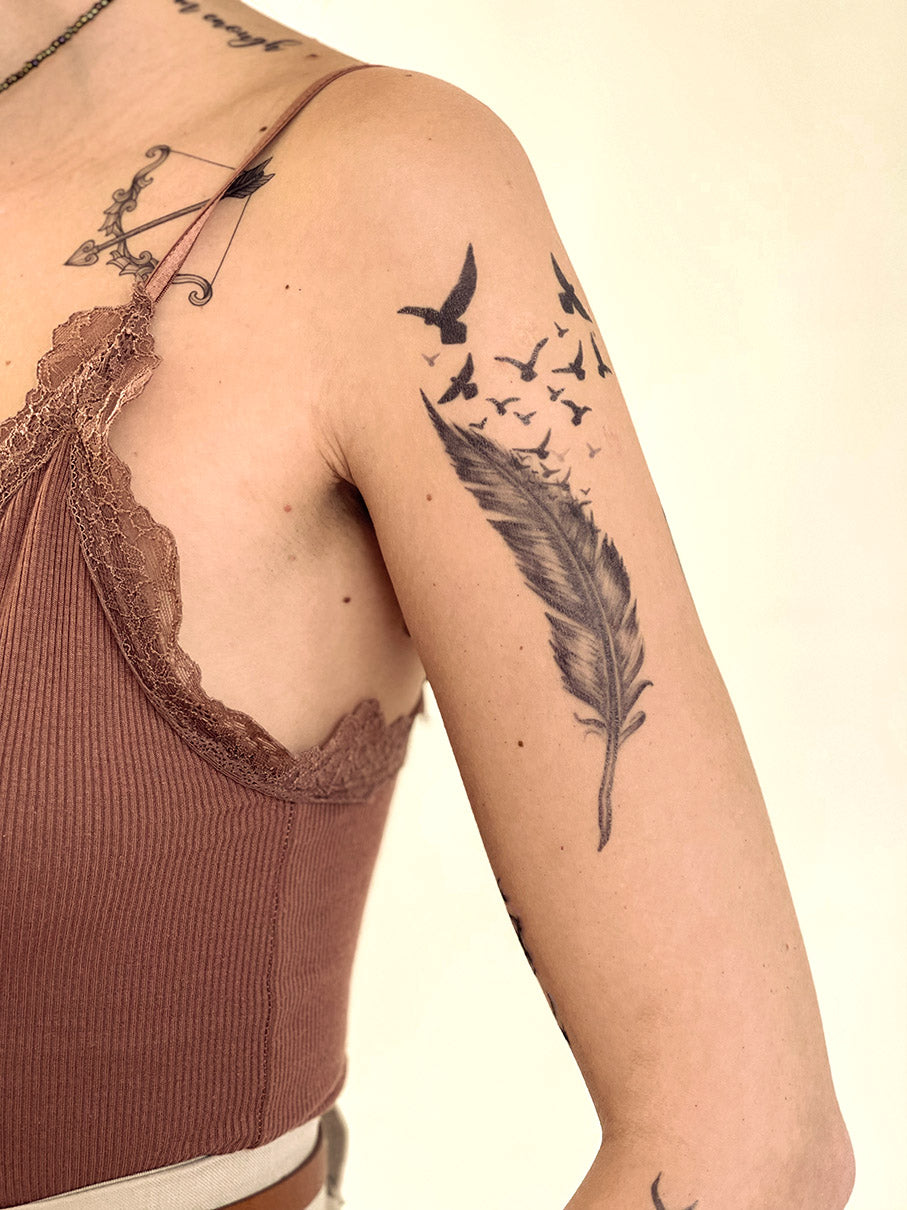 Feather with Flying Birds Temporary Tattoo
