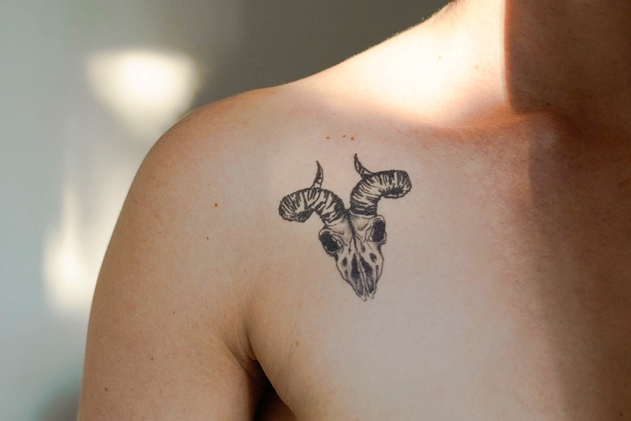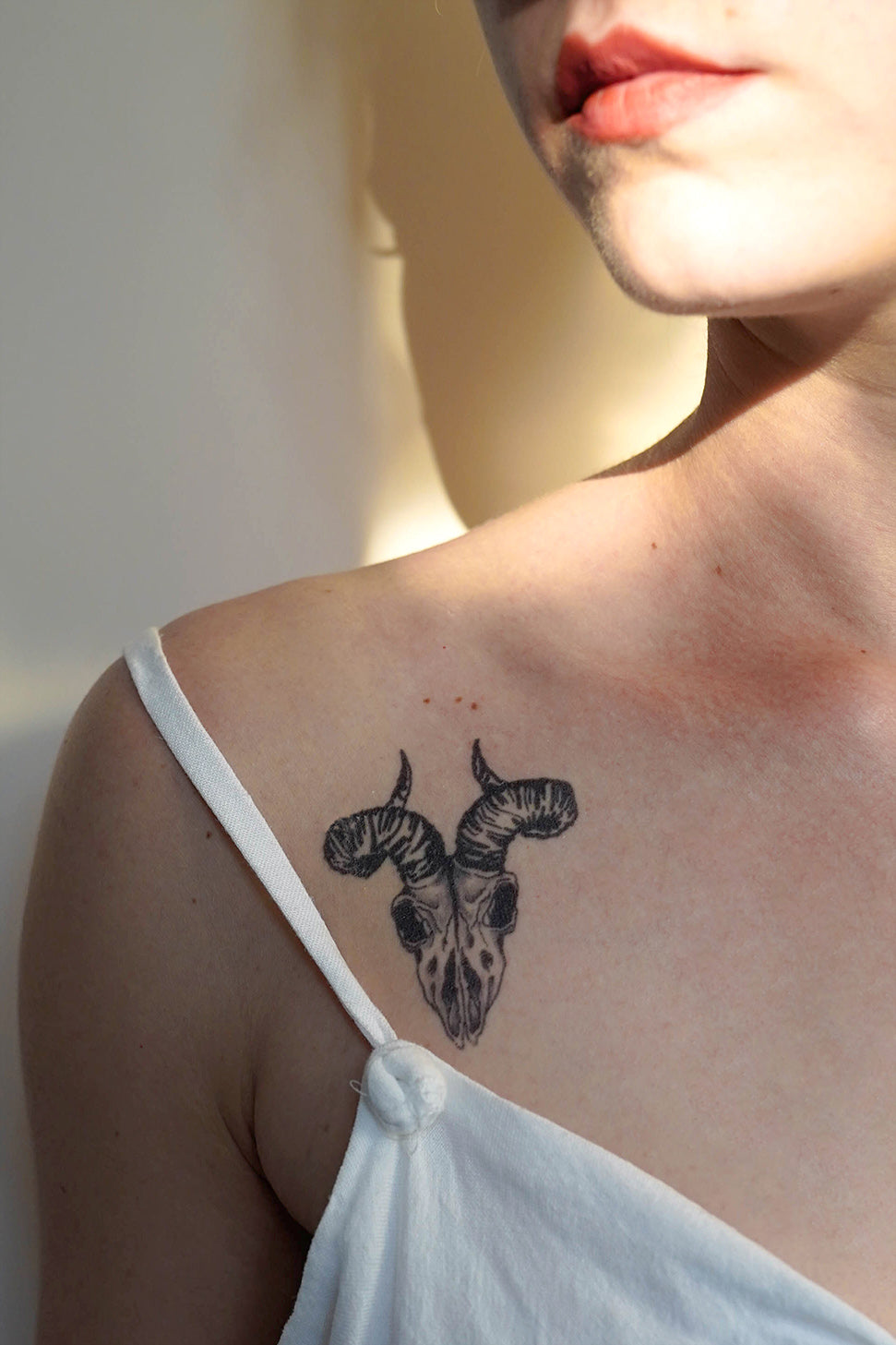 Perfect as a Halloween addition or just an everyday fun and creepy detail you can rock in so many different ways, this goat skull temporary tattoo, although small in size, still packs a punch and promises to get you the attention of those around you.