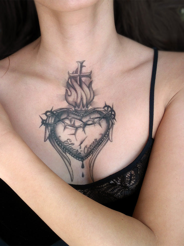 Sacred Heart with Cross Temporary Tattoo (Large)