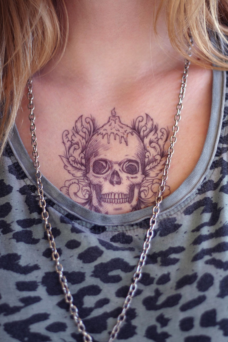Whether you are going for a cute or fierce effect, this top quality temporary skull tattoo will take you there. For the best attention grabbing effect, put it on your chest. It will look great on your shoulder or arm too.