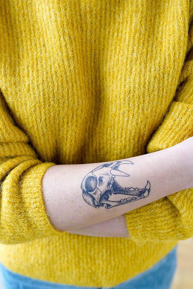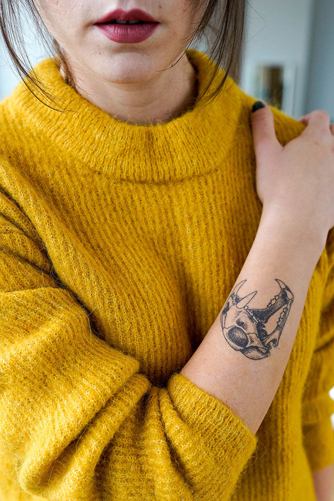 That depends on the type of skin you have, but our designs usually last between two and seven days. How much you sweat will make a difference, and so will the location of the tattoo. If it goes somewhere there’s rubbing or friction, that will reduce the number of days it will stay in place.