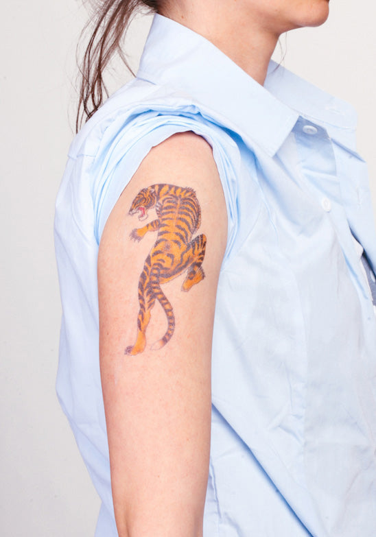 This temporary old school tiger tattoo will look the best anywhere on your arm,